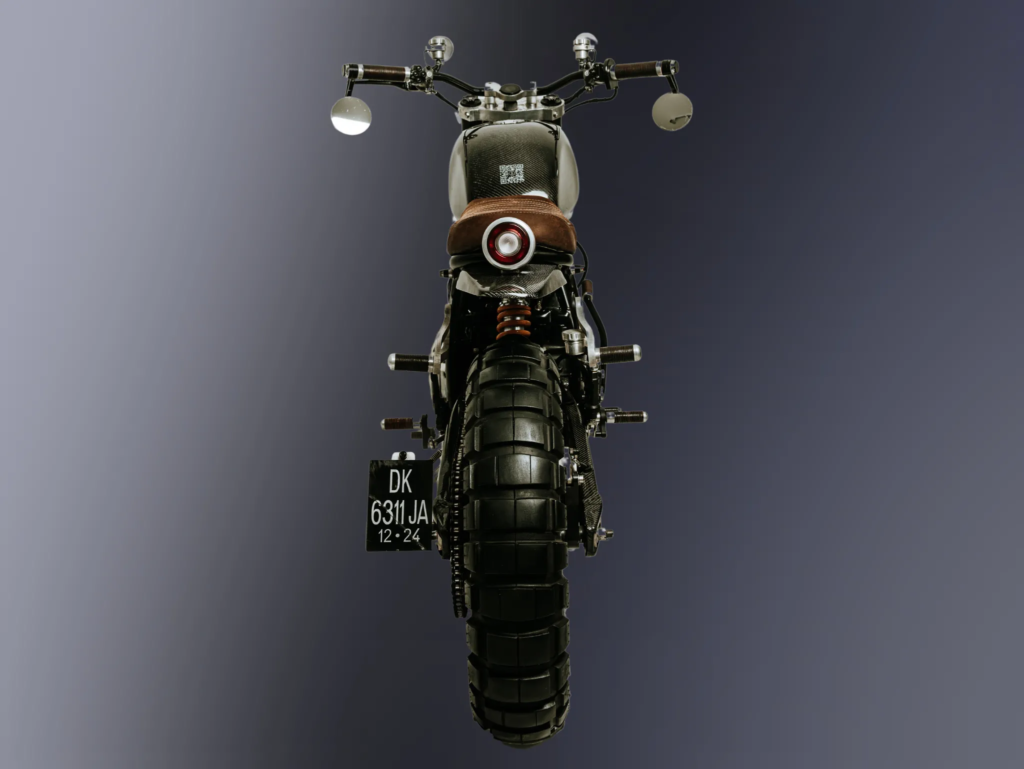 Let’s take a moment to appreciate something special – our custom Scorpio 225c, a masterpiece straight from the vibrant shores of Bali. This isn’t just a motorbike; it’s a work of art on wheels, and we’ve poured our hearts into every detail.